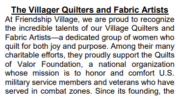 Artilcle in the Friendship Village “The Informant”, June 2025